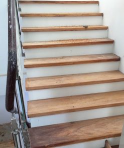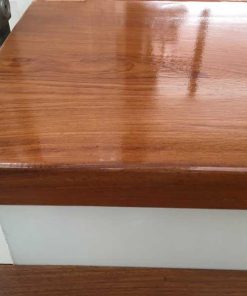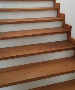 Cầu thang gỗ gõ đỏ tự nhiên mặt dựng đá trắng sứ đẹp