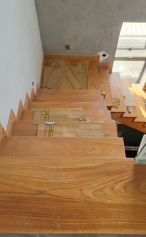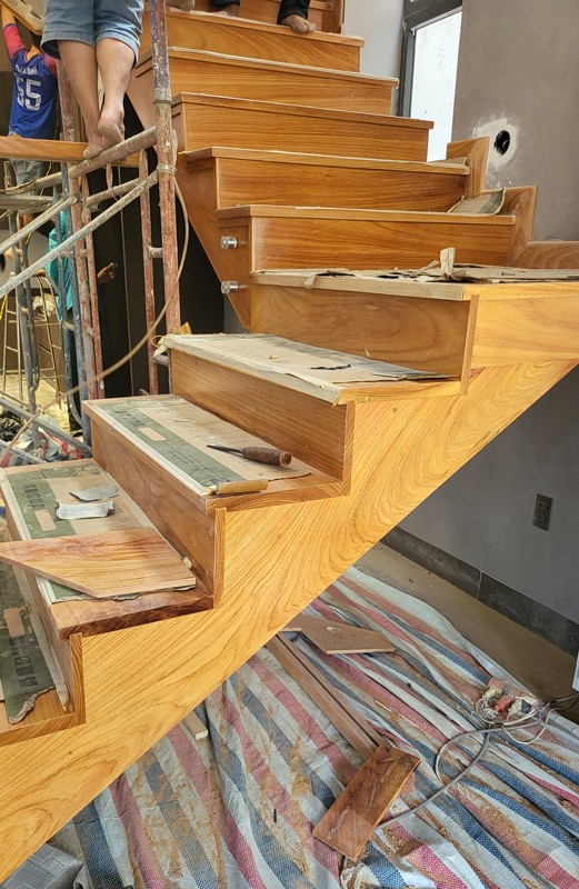 • Qui cách bậc cầu thang gõ đỏ: dày 3cm x rộng từ 26cm -> 30cm x dài 70cm -110cm