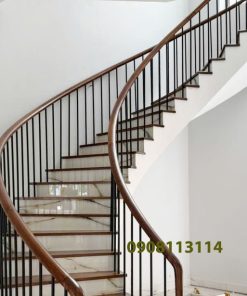 • Tay vịn cầu thang xoắn ốc: tay vịn tròn 6cm hoặc tròn 7cm, tay hạt xoài hoặc tay omega.