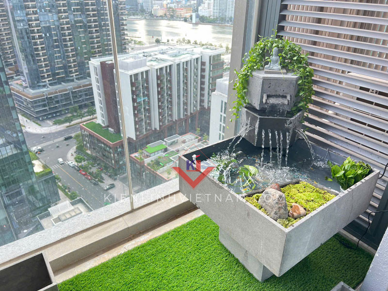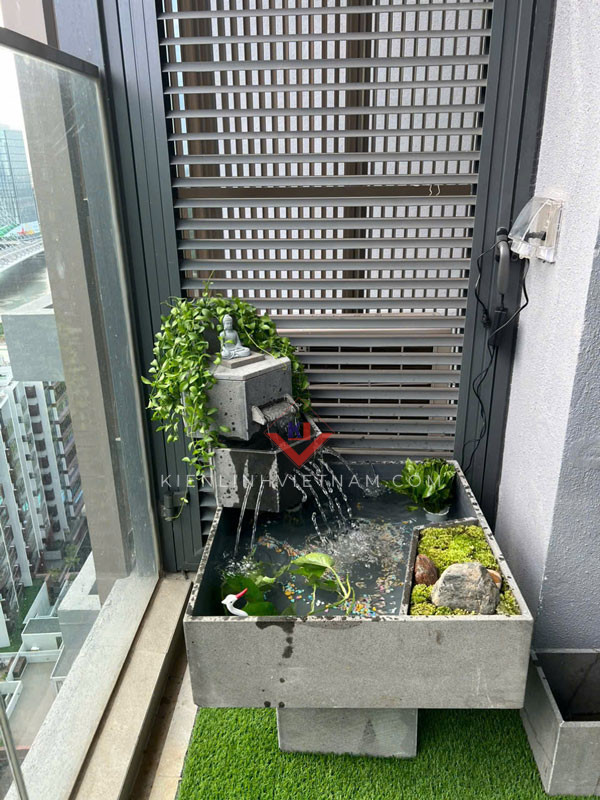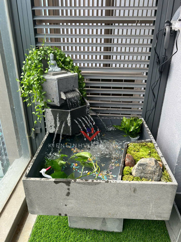 Hồ cá ban công, tiểu cảnh thác nước chảy 2 tầng đặt ban công chung cư