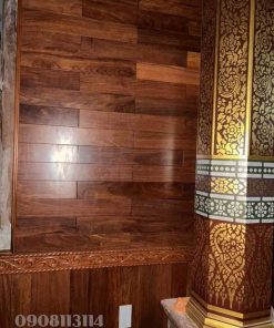 Giá khá cao (gỗ tự nhiên có thể khoảng ~1,500.000 – 2.200.000 đ/m² tùy loại gỗ và hoa văn phào chỉ).