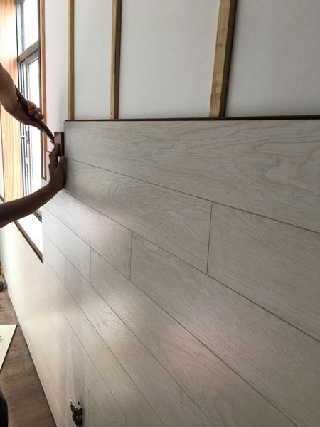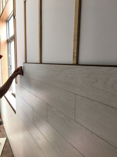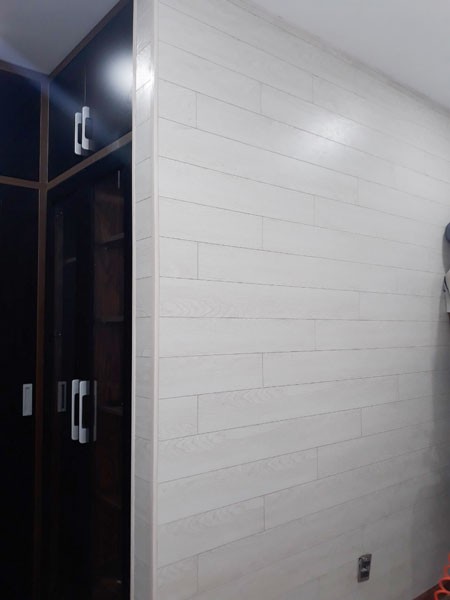 Ốp lamri tường phòng khách bằng ván 8mm vừa tiết kiệm chi phí, vừa cách ẩm cho tường và làm đẹp thêm không gian phòng khách bằng ván sàn màu vân gỗ đủ màu lựa chọn