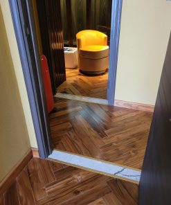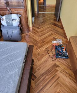 - Sản phẩm: sàn gỗ teak solid lát xương cá 90 độ – sơn UV màu tự nhiên.