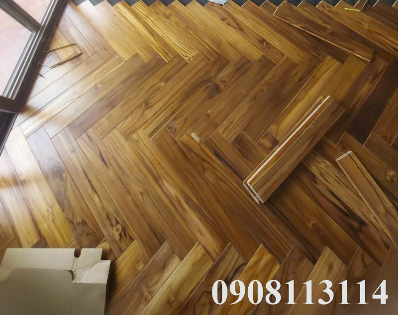 Ván sàn gỗ teak lào lắp kiểu xương cá