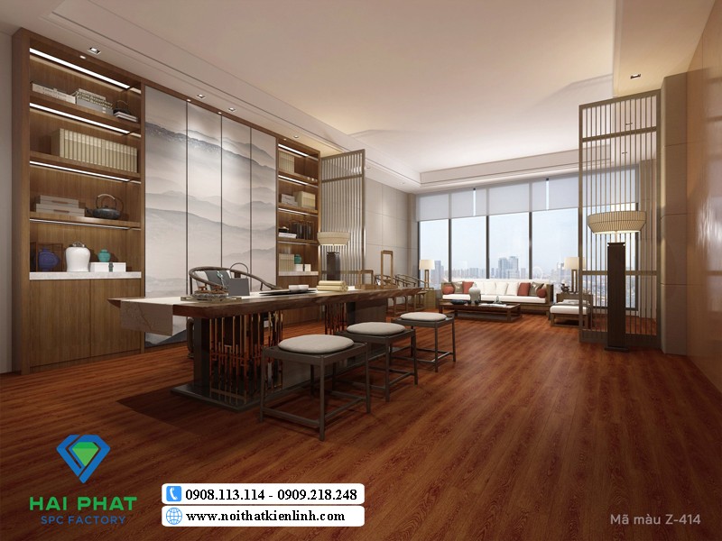 Bên cạnh đó tấm sàn SPC vân gỗ có độ dày 4mm, 5mm và 6mm phù hợp cho các hộ gia đình chung cư có cao độ cửa thấp.