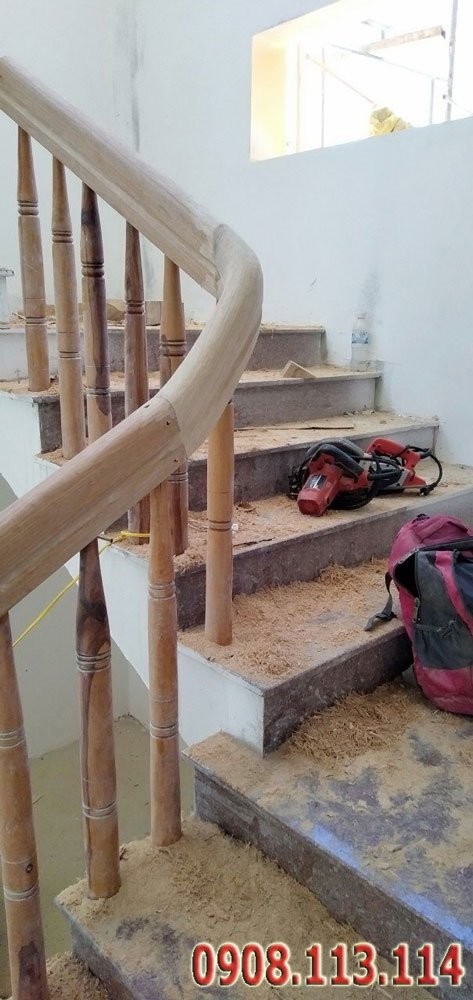 • Gõ gõ phi thi công làm bậc cầu thang gõ đẹp và tay vịn cầu thang gõ, đặc biệt tay vịn omega cho cầu thang uốn lượn
