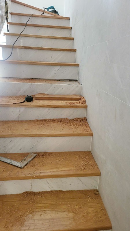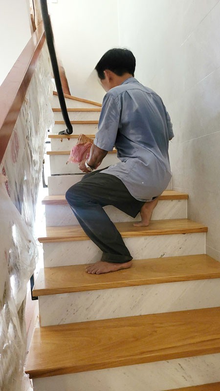 Bậc cầu thang nằm gỗ gõ đỏ Phi dày 2.7cm hoàn thiện