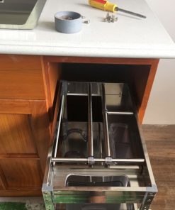Rổ inox để gia vị dao thớt không để bên ngoài như trước đây mà được mang vào bên trong hệ tủ dưới