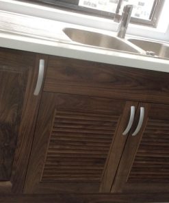 Thi công hệ tủ bếp gỗ walnut tự nhiên