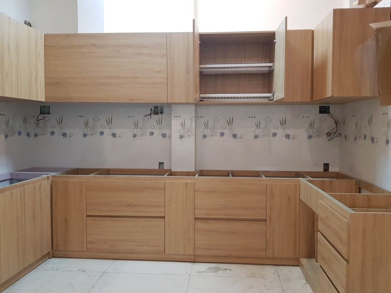 Cốt ván MDF chống ẩm và bề mặt phủ Tủ bếp Melamin sồi