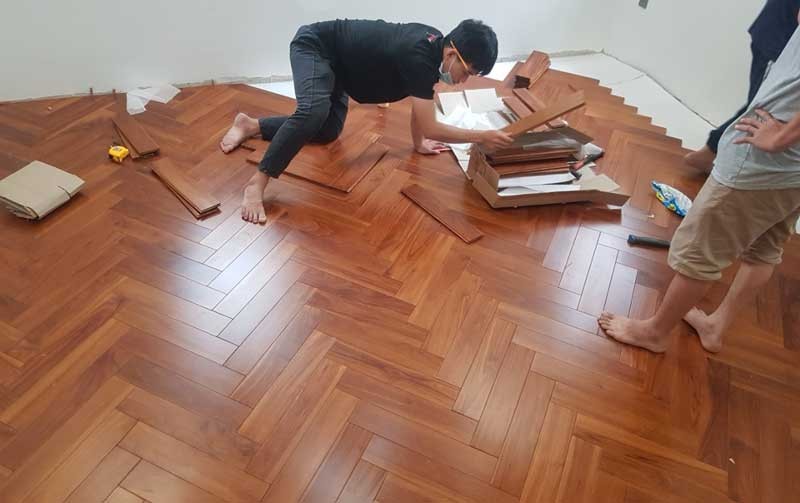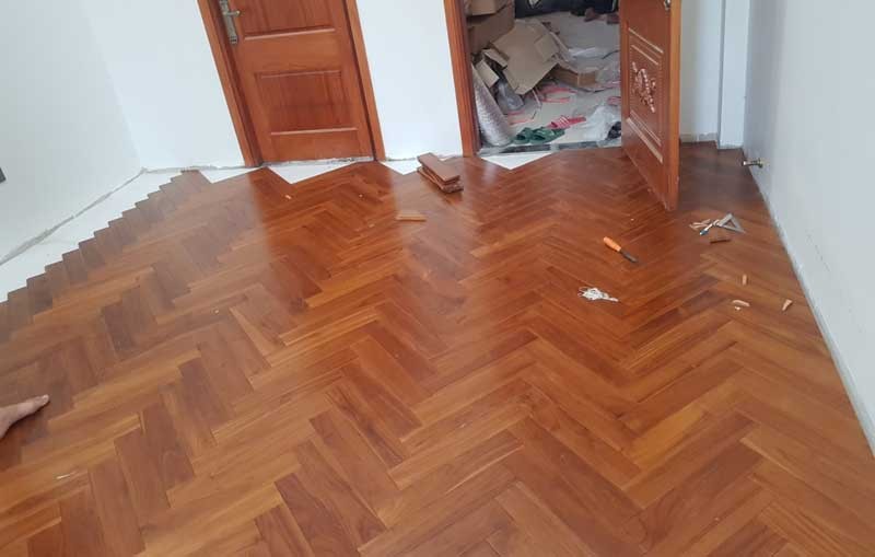 Ván sàn gỗ Teak xương cá màu tự nhiên xuất khẩu